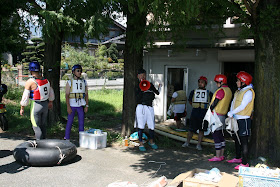 装備もばっちり。事故を起こしてはどうしようもない。柿の里SCの消防署に勤務の宮島君より、レスキュー講習。こういうところはしっかり押さえないといけません。